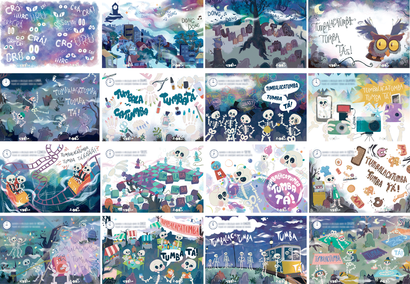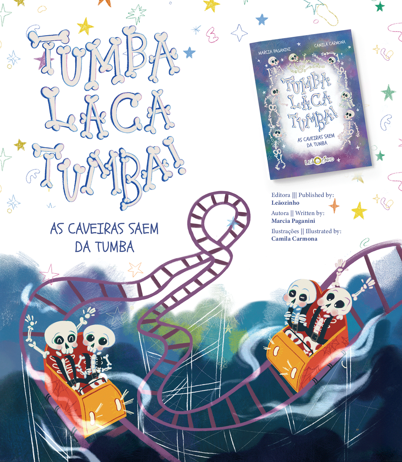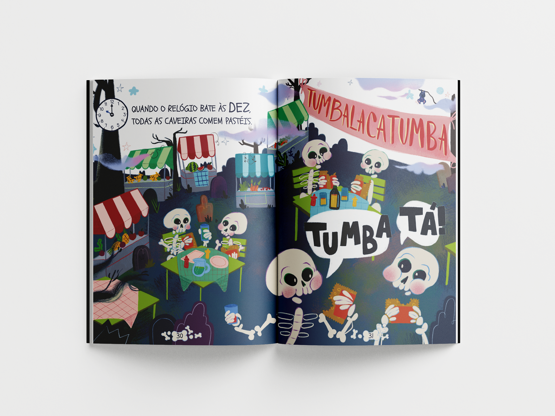 “Tumbalacatumba Tumba Ta - As Caveiras Saem da Tumba” (Tumbalacatumba Tumba Ta - The Skulls Come Out of the Tomb) is a book that invites children to embark on a fun and educational adventure to learn how to tell time. Inspired by the lively popular rhyme about skulls, the book features illustrations full of rhythm and movement, turning learning into a playful and engaging experience. Perfect for children beginning to explore the concept of time, it also offers a joyful and creative experience for parents and children to share together.